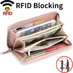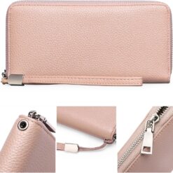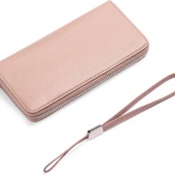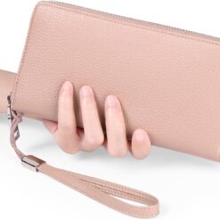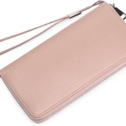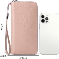 GOIACII Leather Women’s Wallets, Large Capacity Long Ladies Purse Card Holder Purse for Women with RFID Blocking and Detachable Wrist Pink