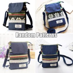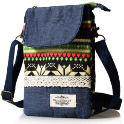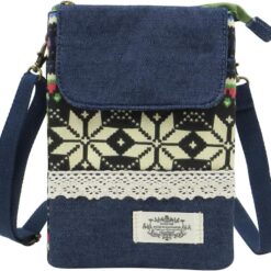 *KXF Cell Phone Pouch Purse Wallet Canvas Zipper Ethnic Style Small Crossbody Messenger Bag Mini Shoulder Bag with Adjustable Shoulder Strap for Women Girls