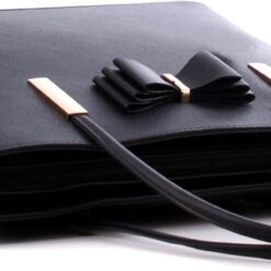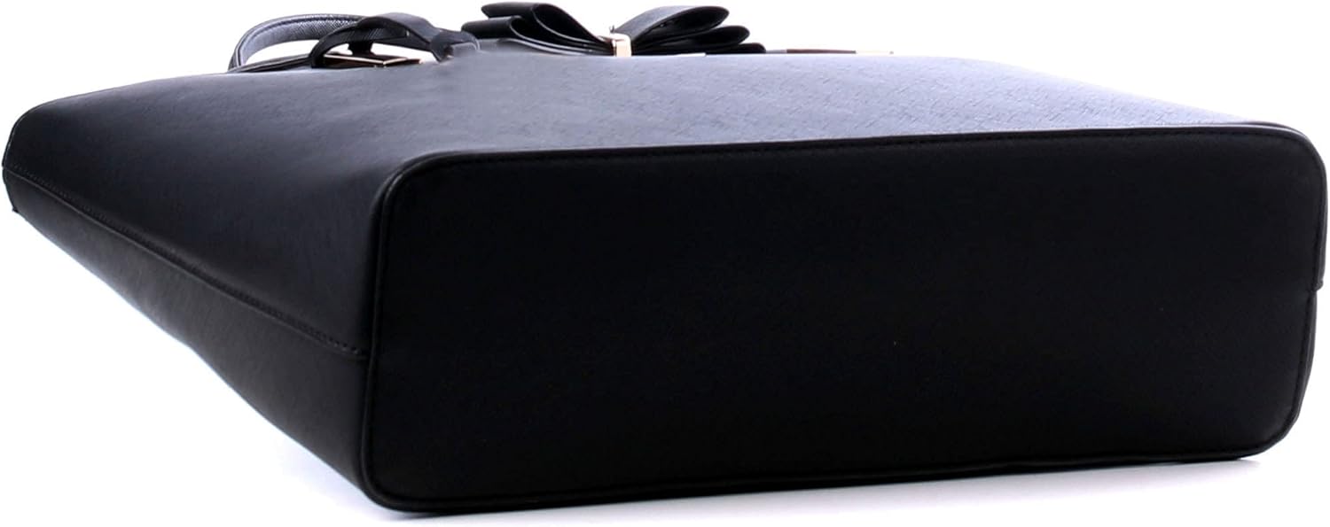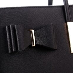The design features a delicate bow accent at the front and refined metal hardware where the handles meet the bag—a tasteful touch that elevates this versatile accessory. Thoughtful details like these ensure it stands out with timeless elegance.